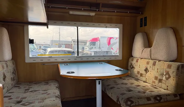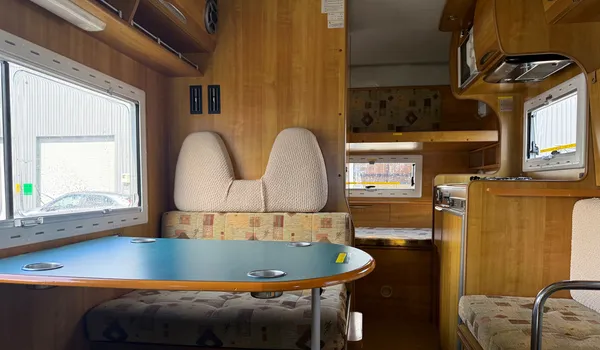 車内は驚くほど広く、ダイネット・ベッド・キッチンが効率よく配置された無駄のないレイアウト。