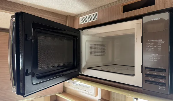 A microwave for quick heating and simple cooking, making meals inside the camper more convenient.