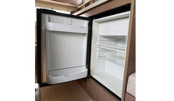 A generously sized refrigerator keeps drinks and food fresh, supporting self-catering and outdoor adventures.