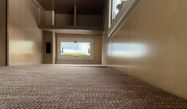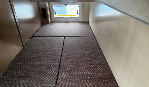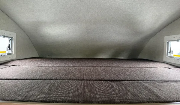 The lower rear bed offers a spacious sleeping area and can also be used for luggage storage.
