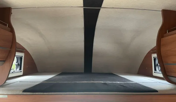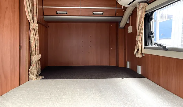 The bunk bed above the driver’s seat measures 1,800 mm × 1,900 mm—larger than a double bed—offering a roomy space for two adults.