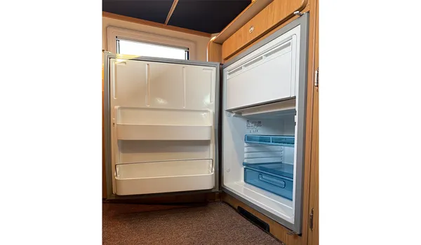 A convenient refrigerator keeps drinks and food fresh even on long journeys.