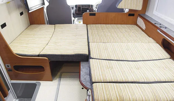 Remove the table and unfold the seats to create a full-flat bed space. There’s plenty of room for the whole family to lie down comfortably.