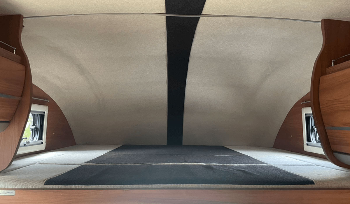 運転席上部にあるバンクベッドは1,800mm×1,900mmとダブルベッド以上のサイズで、大人二人がゆったりとできるスペースがあります。
