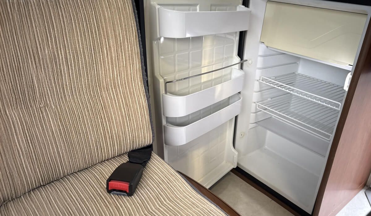冷蔵庫は大型の90Lで、たっぷりと食材を収納。